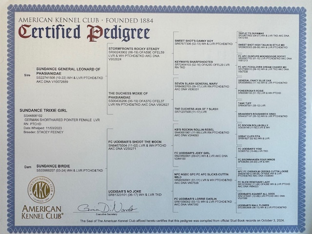 Sundance Kennels was established in 1980, and since that time has consistently produced quality-bred German Shorthaired Pointers for both foot hunting and field trial competition.